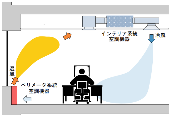 同じ空間内(部屋など)で冷暖房を同時に動すことで、冷風と温風が発生。それらが混合して相殺することで発生する損失を、混合損失と言います。